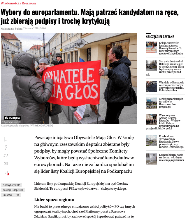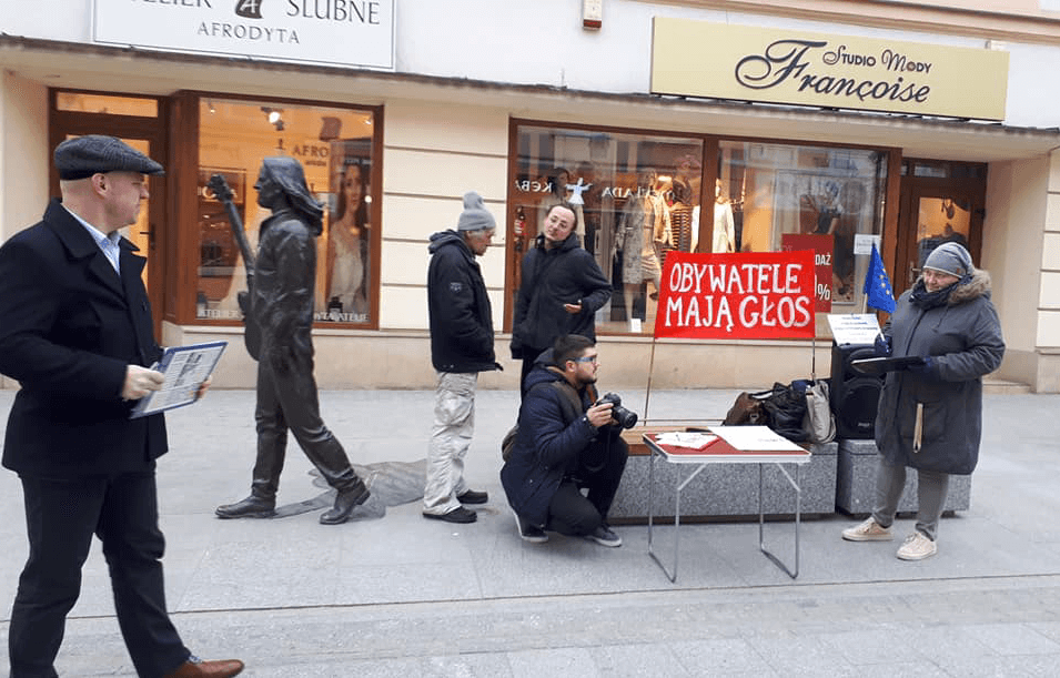 W środę, 13 marca, na ulicy 3-go Maja (obok pomnika Nalepy) w Rzeszowie odbyła się akcja zbierania podpisów pod listem do polityków, kandydujących do Parlamentu Europejskiego.
